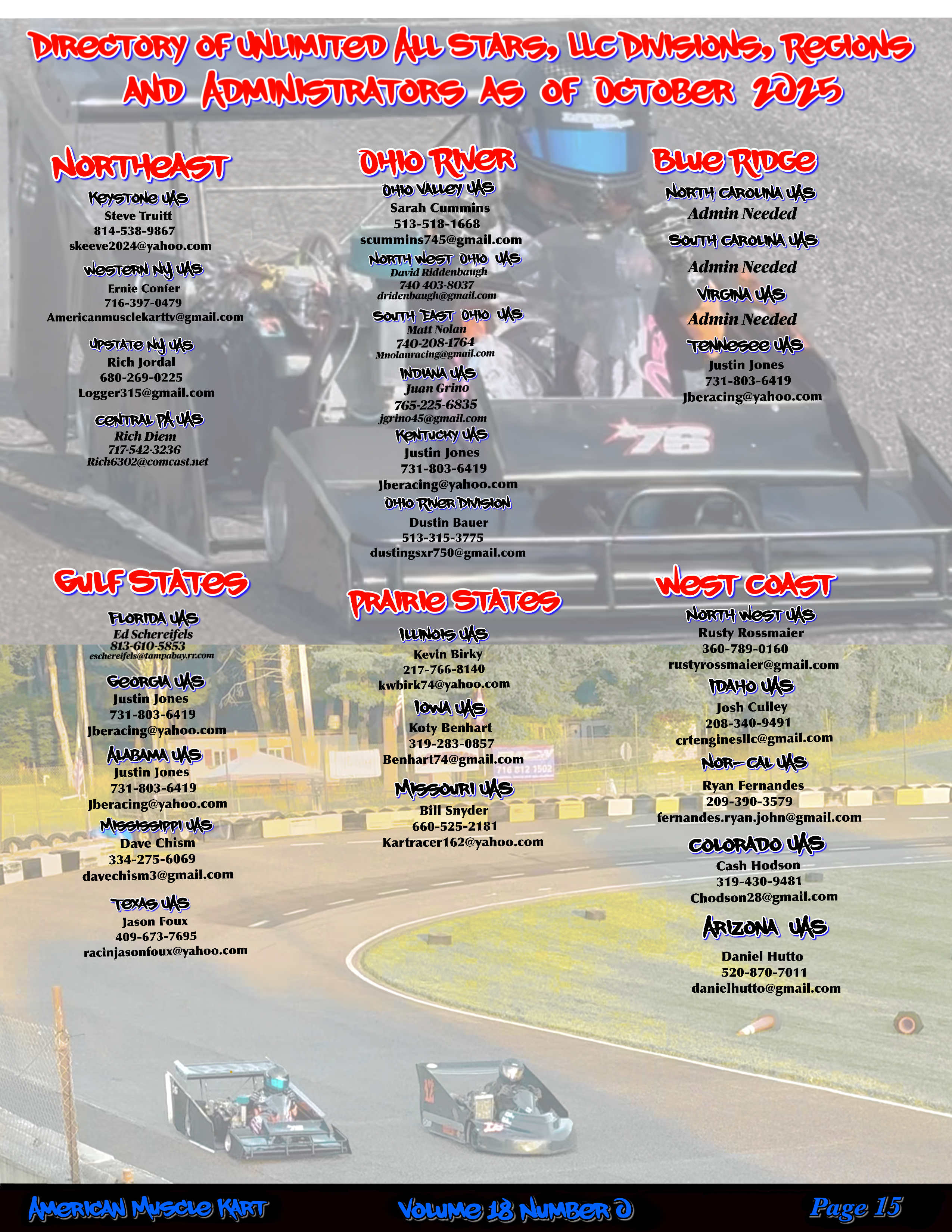 Everyone interested in the UAS and open class speedway kart racing should subscribe to The American Muscle Kart.